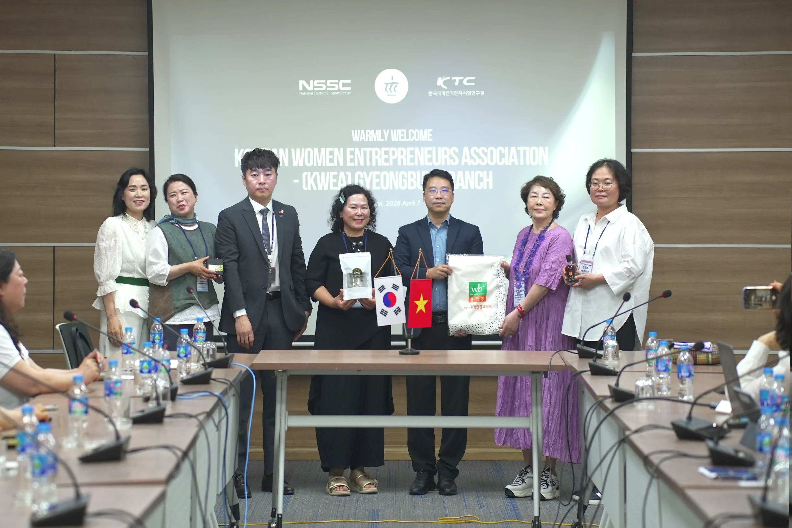 Sáng ngày 07/04/2026, Trung tâm Hỗ trợ Khởi nghiệp Quốc gia (NSSC) đã đón tiếp đoàn Hiệp hội Nữ Doanh nhân Hàn Quốc – Chi hội Gyeongbuk với hơn 40 doanh nghiệp tham gia, mở ra nhiều cơ hội hợp tác trong các lĩnh vực sản xuất, thương mại và đổi mới sáng tạo giữa hai quốc gia.